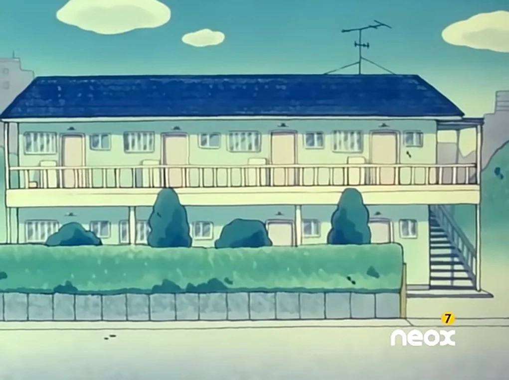 Midori Ishizaka lived in an apartment (アパート Apāto). It is located near the neighborhood where Shinnosuke lives, in a set of apartments, this apartment is number 204. The apartment is diaphanous, except for two doors that are separated from the kitchen and another to separate the bathroom. She moved to a bigger one when she married Junichi.