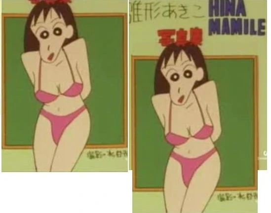 Hina Mamile is one of the typical girls in bikini who Shin-chan loves, together with Tatako Matsu, Mariya Yamada, Fumie Nakajima etc.