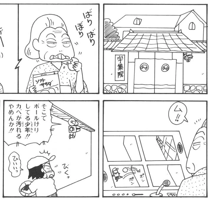 It is very large, surrounded by a high wall, has a large garden and a huge entrance. It is home to Ms. Ujuin, the owner of the house, with her son Mashumaro and his dog, and Tane Higashimatsuyama works as a guard.