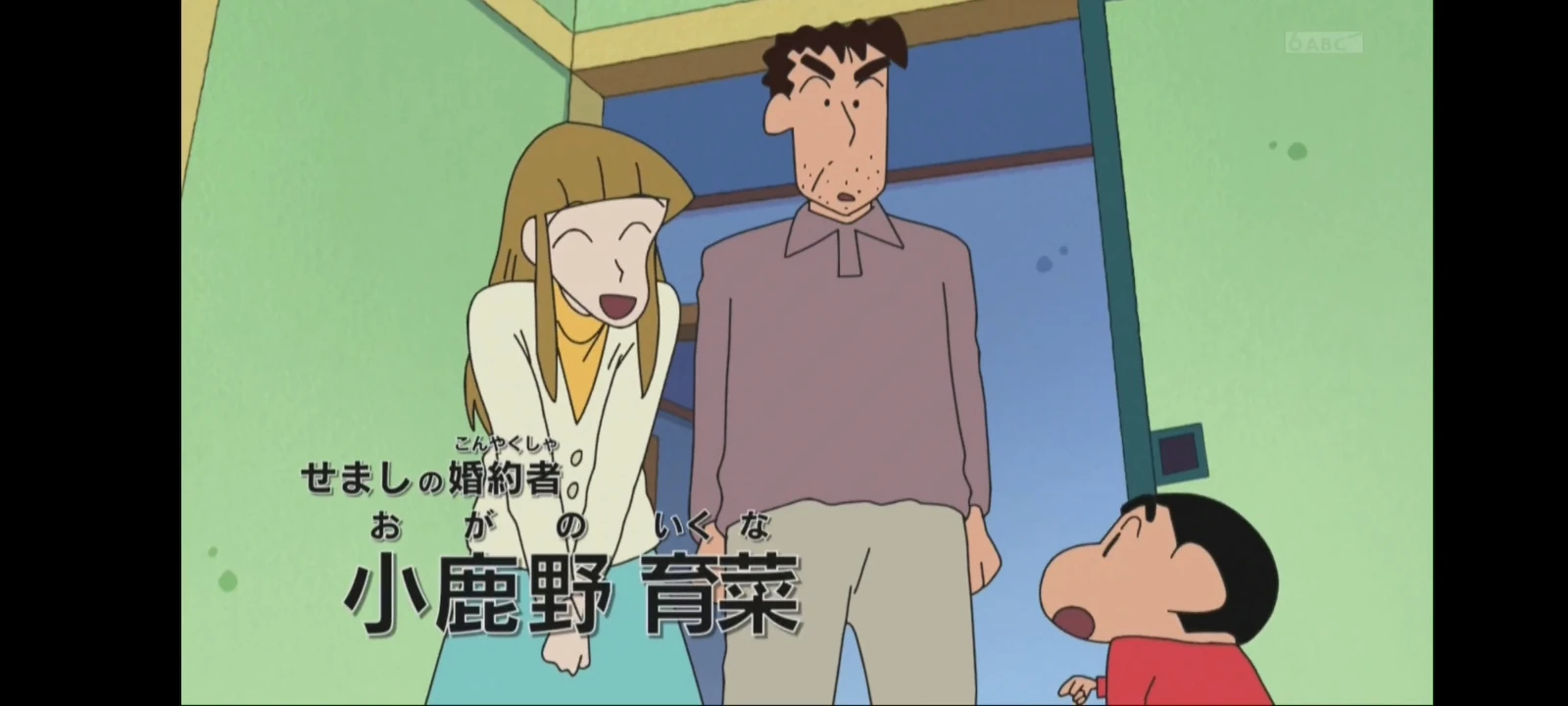 Ikuna Nohara (野原育菜) [formally Ikuna Ogano (小鹿野育菜) She is Semashi Nohara's Wife and she is a divorced young mother of Itsuki and Natsumi Ogano. She is 27 year old who is 13 years younger than Semashi who is 40 years old.
