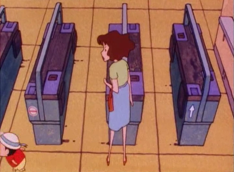 Hiroshi catches the train at Kasukabe Station each morning (except on holidays and Sundays) to get to Futaba Corporation. Shinnosuke and Misae also catch the train sometimes to go to the mall.